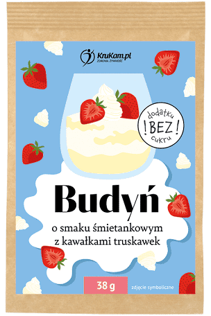 Budyń o smaku śmietankowym z kawałkami truskawek 38g bez dodatku cukru