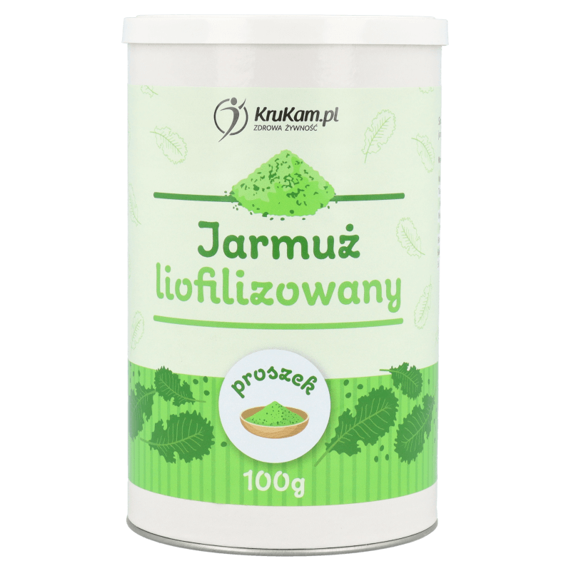Jarmuż to warzywo liściaste z rodziny kapustowatych. Ma on duże, grube liście o intensywnie zielonym kolorze. Są one pomarszczone i mają szorstką, chropowatą powierzchnię. Ma dość intensywny smak. Liofilizacja pomaga zachować jego wartości odżywcze i inne właściwości jak smak i kolor. W formie sproszkowanej jak łatwy i szybki w użytku.